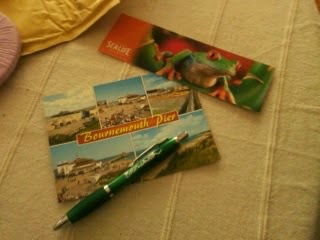Como se ainda não bastasse, na sua viagem a Londres ainda se lembrou de mim e trouxe-me um postal, um marcador (que faço colecção) e uma caneta (que também faço colecção). Adorei!!!